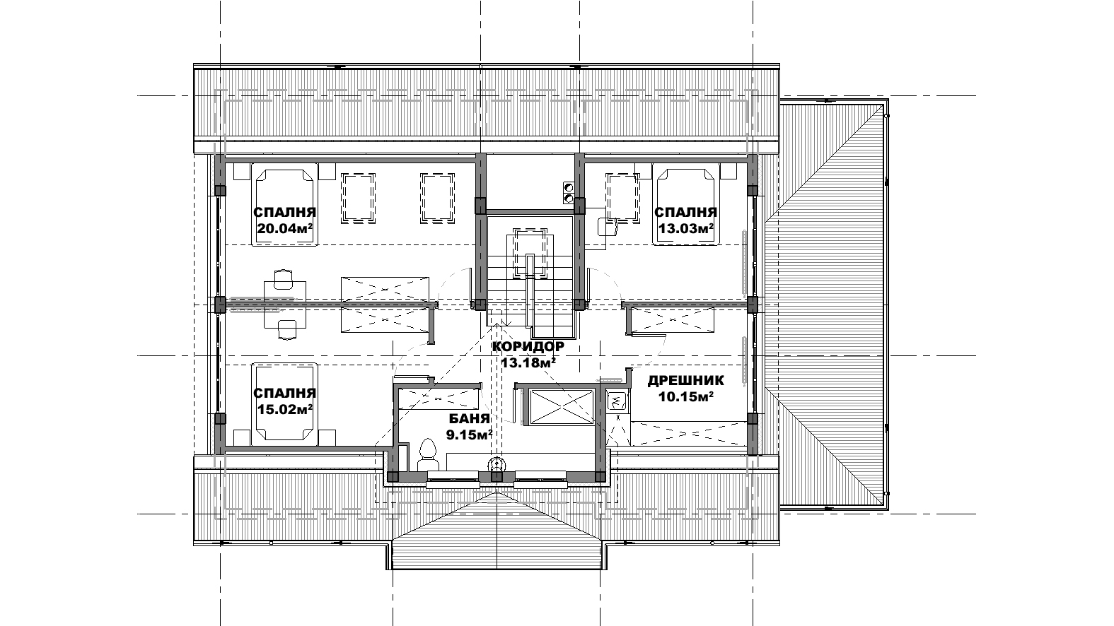 Проект С - 174 ЗП:ConixtradeРЗП:SofiaЕтажи:Warehouse, logisticsСпални:3 120 m2/33 583 ft2 Застроена площ 137 кв.м. Разгъната застроена площ 235 кв.м. Етажи 2 Стаи 5 Бани 2 Тип покрив Двускатен Impressions HUF house MODUM 6:10