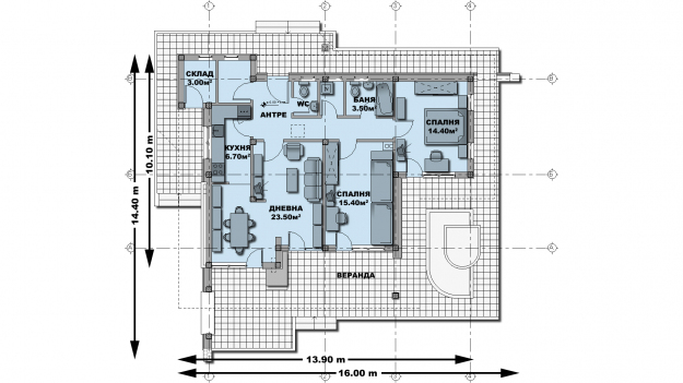 Проект С - 198 ЗП:ConixtradeРЗП:SofiaЕтажи:Warehouse, logisticsСпални:3 120 m2/33 583 ft2 Застроена площ 99 кв.м. Разгъната застроена площ 99 кв.м. Етажи 1 Стаи 3 Бани 2 Тип покрив Четирискатен Impressions HUF house MODUM 6:10