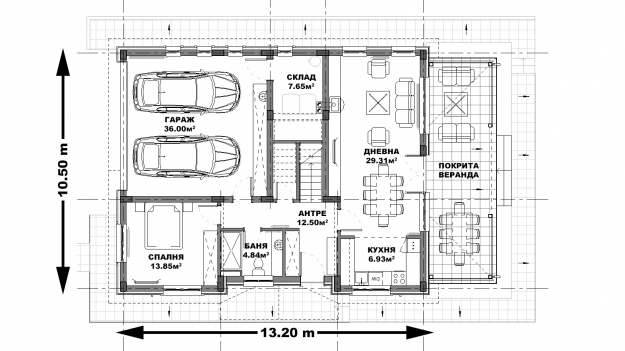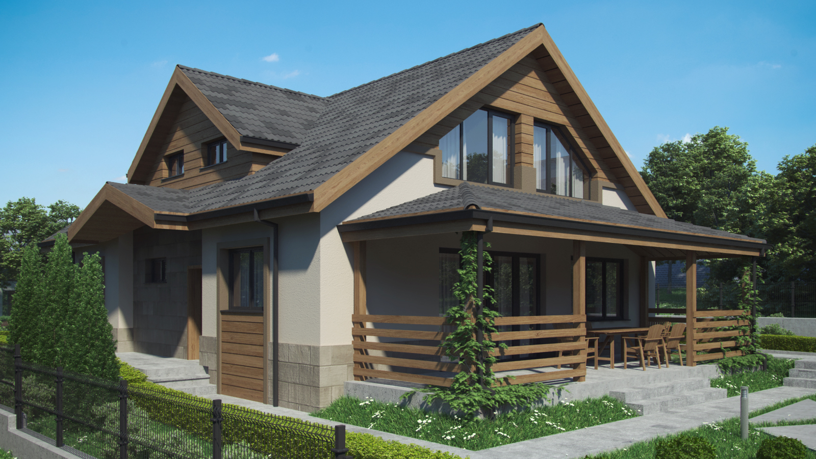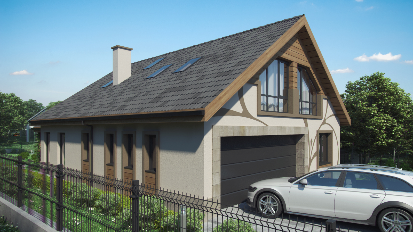 Проект С - 174 ЗП:ConixtradeРЗП:SofiaЕтажи:Warehouse, logisticsСпални:3 120 m2/33 583 ft2 Застроена площ 137 кв.м. Разгъната застроена площ 235 кв.м. Етажи 2 Стаи 5 Бани 2 Тип покрив Двускатен Impressions HUF house MODUM 6:10